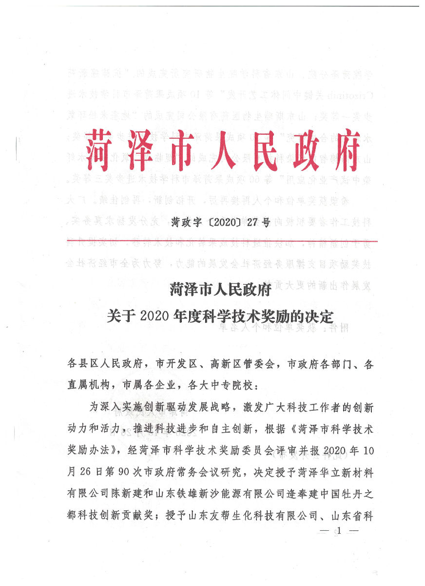 聚祥全自動卸磚打包機(jī)被評為菏澤市科學(xué)技術(shù)一等獎